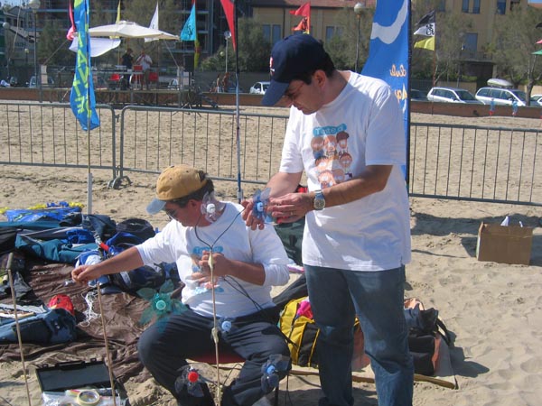 Carlo Annona e Gianni La Macchia sistemano un piccolo giardino del vento