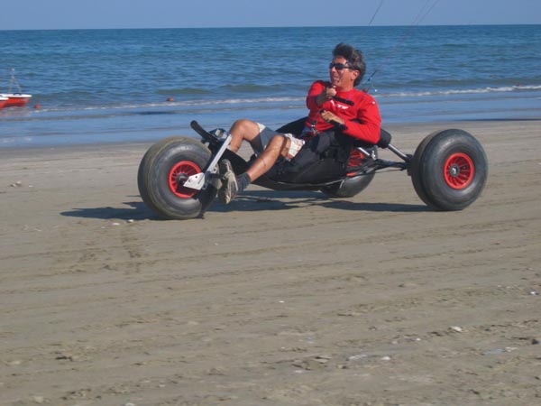 Buggy sulla spiaggia: da notare le grandi ruote adatte alla sabbia
